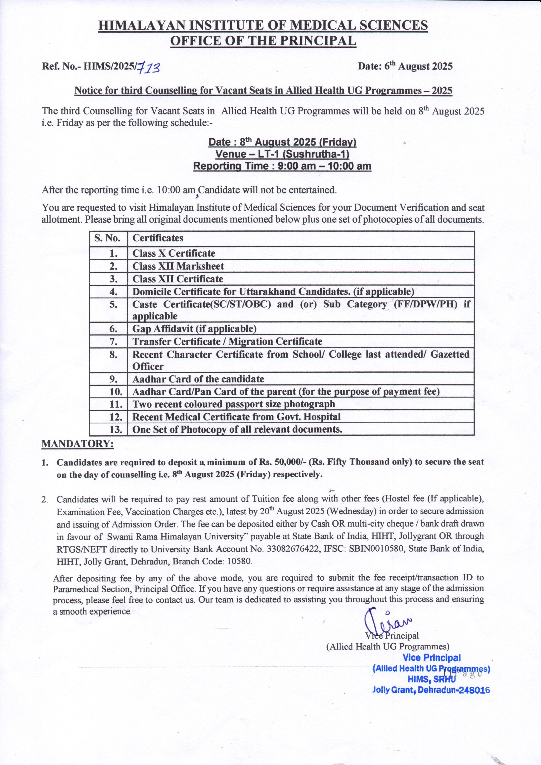 Admission Notices Admission Notices Admission Notices 3rd Counselling for Vacant seats in Allied Health UG Programme- 2025 6 August, 2025 View Notification of 2nd Counseling for Admission into B.Sc. Nursing Programme for the Academic Session 2025-26 5 August, 2025 View Result of Ph.D. Entrance Examination (Ph.D.EE) July 2025 28 July, 2025 View Admission Notification – MBBS programme, Academic Session-2025-26 21 July, 2025 View Answer Keys Ph.D. Entrance Examination (Ph.D.E.E.) July-2025 17 July, 2025 View ⏮ First◀ Prev23456Next ▶Last ⏭