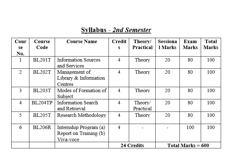 • To develop the knowledge, skills and attitudes of the students leading to professional qualification for practicing librarianship as a career.