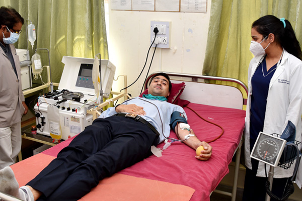 The use of blood is optimized by 100% component separation and a good inventory of blood products are ensured through regularly conducted donor motivational as well as recruitment drives. The clinical services of our department include patient blood management, donor apheresis, convalescent plasma harvest for use in COVID-19 patients, therapeutic plasma exchange, therapeutic phlebotomy, autologous platelet-rich plasma, transfusion support with special blood components such as leucodepleted, irradiated, saline-washed, minor phenotype matched and reconstituted whole blood for use in neonatal exchange transfusions. The hematopoietic stem cell harvest from peripheral blood is performed using apheresis where the transfusion medicine specialist plays an active role in the bone marrow transplantation team of the hospital. A range of immuno-haematological tests is standardized in the department, such as antibody screening and identification using panel cells, elution and adsorption studies. Additionally, the laboratory work-up of the patients having allo and autoimmune hemolytic anaemia, hemolytic disease of newborn and antenatal serology is done routinely. Our serology laboratory houses three fully automated testing platforms to perform blood grouping, antibody screening, pre-transfusion testing and the screening of transfusion- transmissible infections by the 4th generation ELISA and the individual donor nucleic acid amplification technique (ID-NAT). Our facility is in fact the first blood centre in Uttarakhand to have started providing ID-NAT tested blood to the recipients. For such endeavours, the NACO-assisted regional training centre award was bestowed upon us, to train the medical officers, nurses, technicians and blood donor counsellors from other blood centres in Uttarakhand.