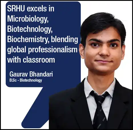 SRHU School of Biosciences is an academic unit with a vision to become a renowned institution by inculcating scientific temper and values among learners in thrust areas of biological sciences. The School of Biosciences offers life science courses and is committed to translational research, impact, and industrial application with a substantial portfolio of enterprise, activity, and expertise. At present, the school is offering comprehensive undergraduate, postgraduate and doctoral programs in cutting-edge and socially relevant disciplines such as: Biotechnology, Biochemistry, Microbiology, Food Science & Technology, Environmental Sciences. The school seeks to provide a high-quality teaching and learning experience in leading-edge areas of biosciences, cultivating a comprehensive perspective to nurture top-tier human resource. With a strong focus on interdisciplinary learning, the school bridges fundamental sciences with real-world applications. Its faculty members bring rich expertise from premier institutions, ensuring students are guided by leaders in their fields. The school is driven by a vision of preparing graduates who are not only technically skilled but also socially responsible and future-ready.
